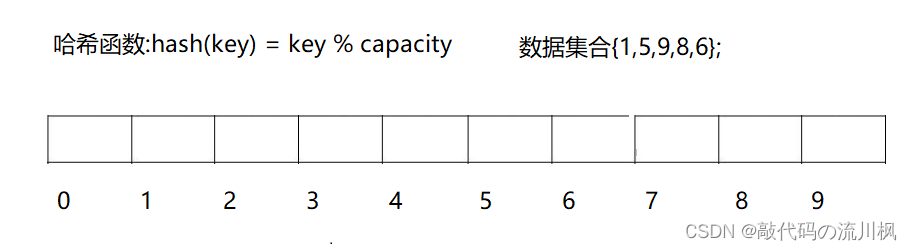 数据集合{1,5,9,8,6};哈希函数:hash(key) = key % capacity;capacity为存储元素底层空间的总大小