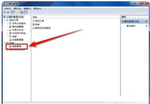 3.在“计算机管理”窗口中,点击左侧的“磁盘管理”。