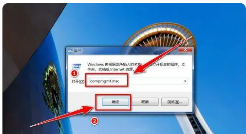 方法二:按下快捷键“win + R”,便可打开运行窗口输入“ compmgmt.msc ”按照步骤完成。