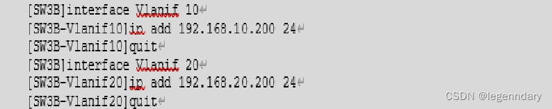 (2)配置交换机SW3B上划分的每个VLAN的VLANIF端口的IP地址。