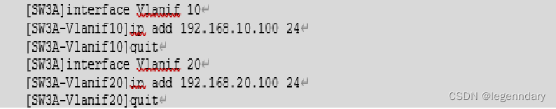 (2)配置三层交换机的名称为SW3A,在交换机上划分两个VLAN:VLAN10和VLAN20。