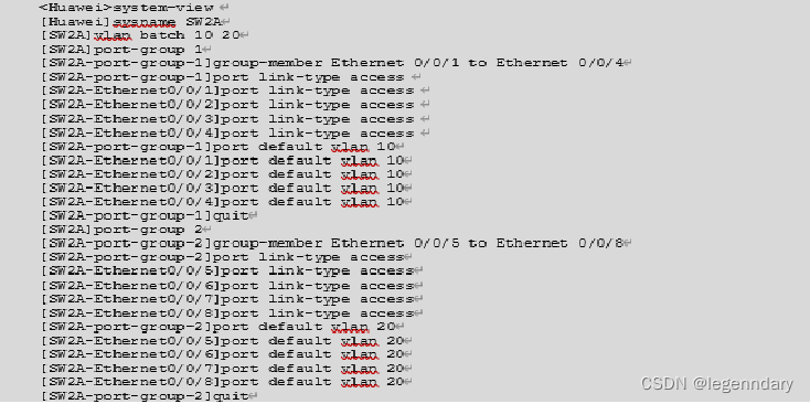 (1)配置二层交换机SW2A的GE0/0/1端口。