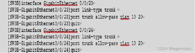 (3)配置三层交换机SW3B的GE0/0/23和GE0/0/24端口。