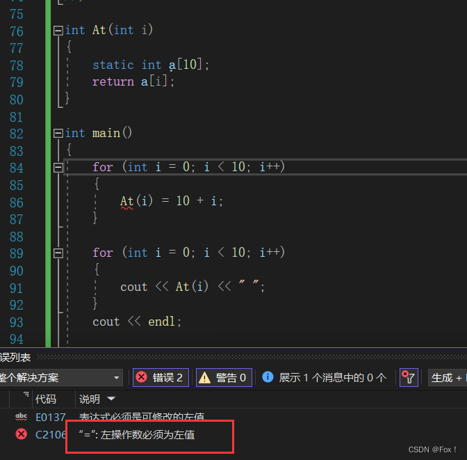 为啥引用返回是正确的呢?由于引用只是给a[i]取了一个别名,a[i]是具有读写功能的,所以就不会报错了。
