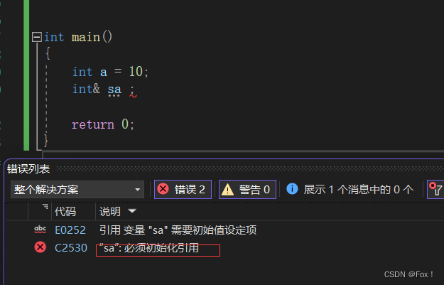 {int a = 10;int& sa ;return 0;
