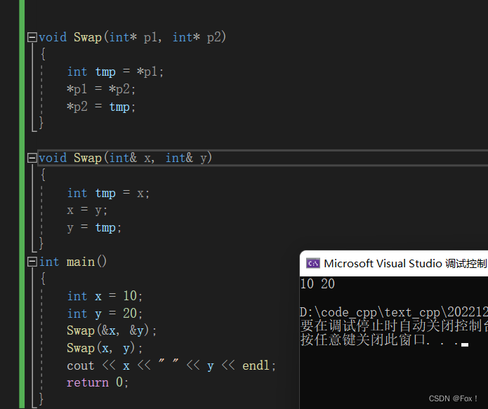 {int a = 10;int& sa = a;int b = 20;int& sb = b;return 0;