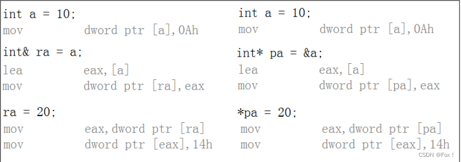 | 7. 访问实体方式不同,指针需要显式解引用,引用编译器自己处理 |