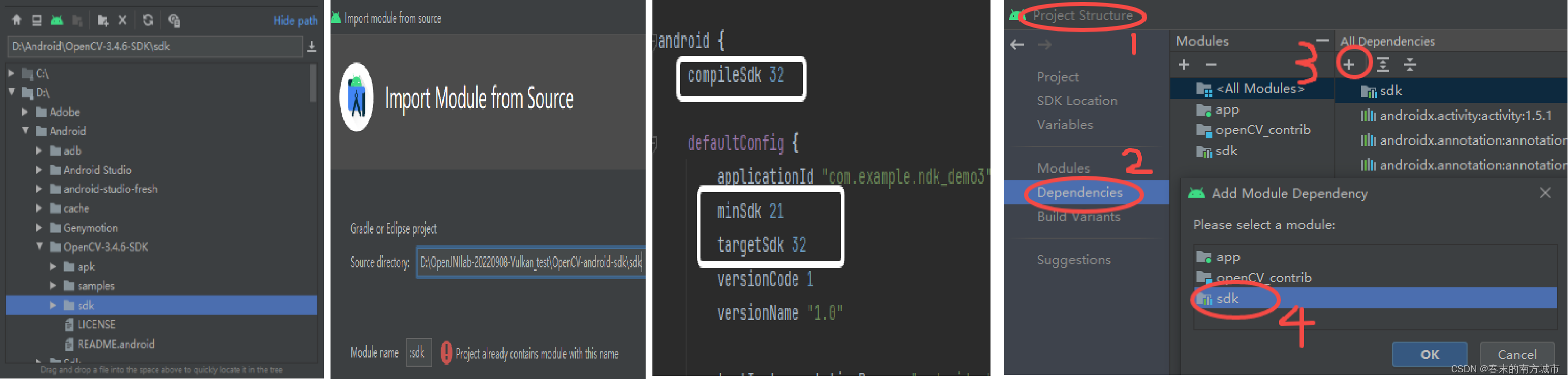 - 添加本地依赖项Opencv库文件,成功后在app中的build.gradle中dependencies {implementation project(path: 'sdk')}