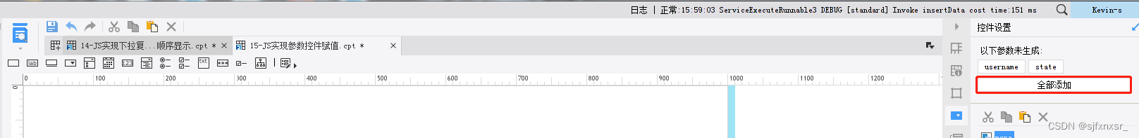 2)打开参数面板,在右侧的控件设置中,点击全部添加按钮,如下图所示:
