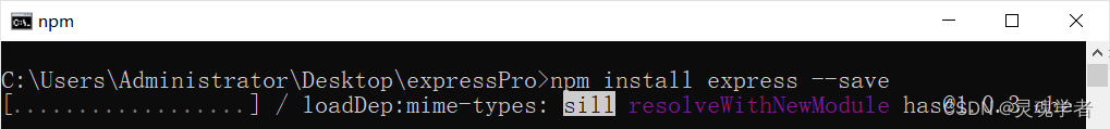 使用npm包管理器下载安装Express,并保存到package.json文件的依赖列表中;等待进度条安装完成即可;