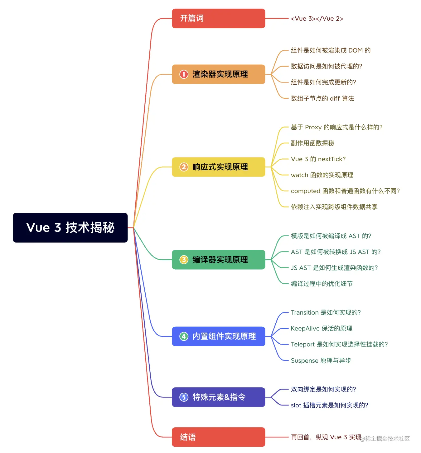 本小册主要划分为了 5 大模块 来依次为你揭开 Vue 3 的“神秘面纱”。