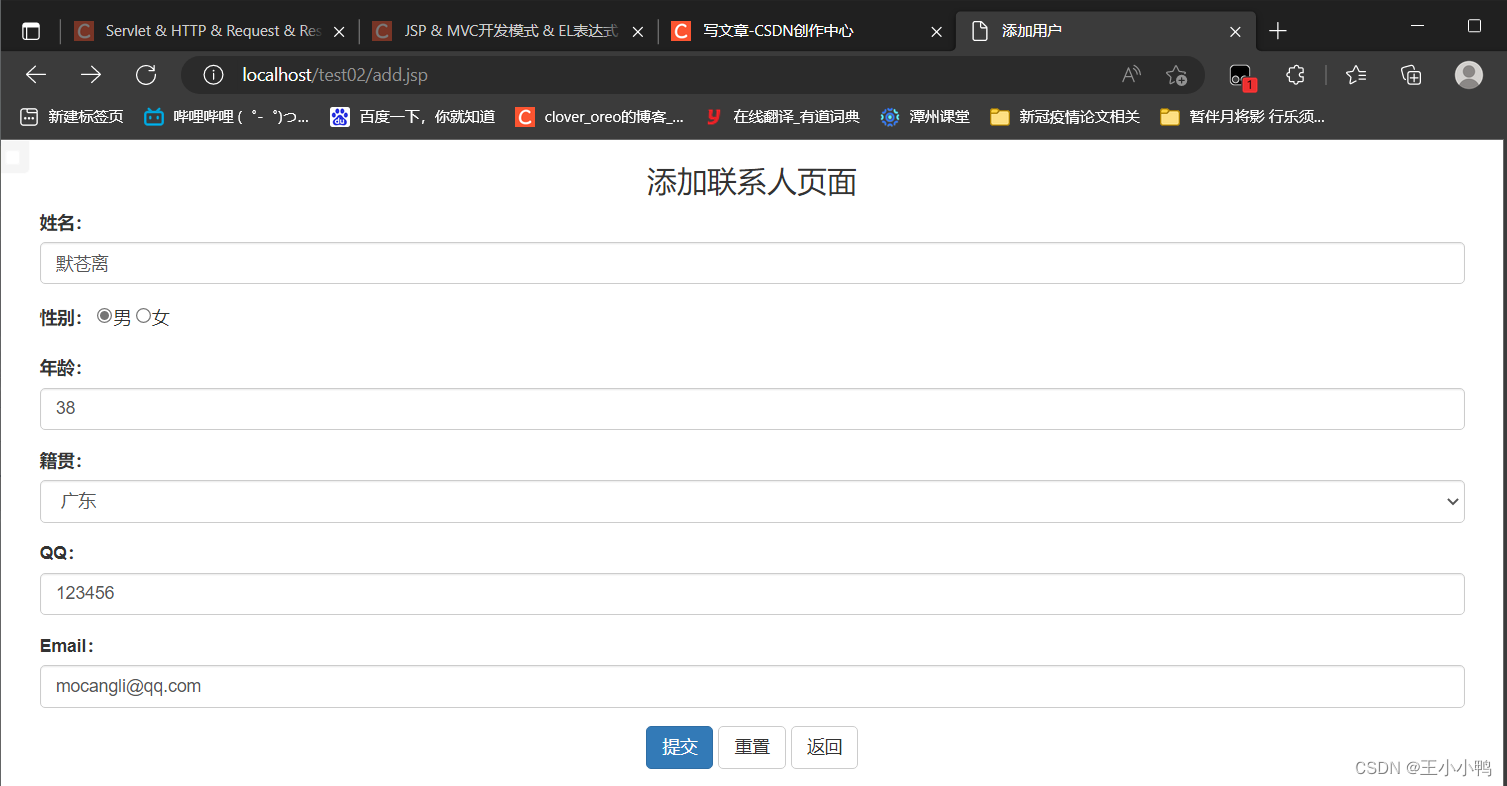 在list.jsp中添加联系人按钮路径跳转到add.jsp
