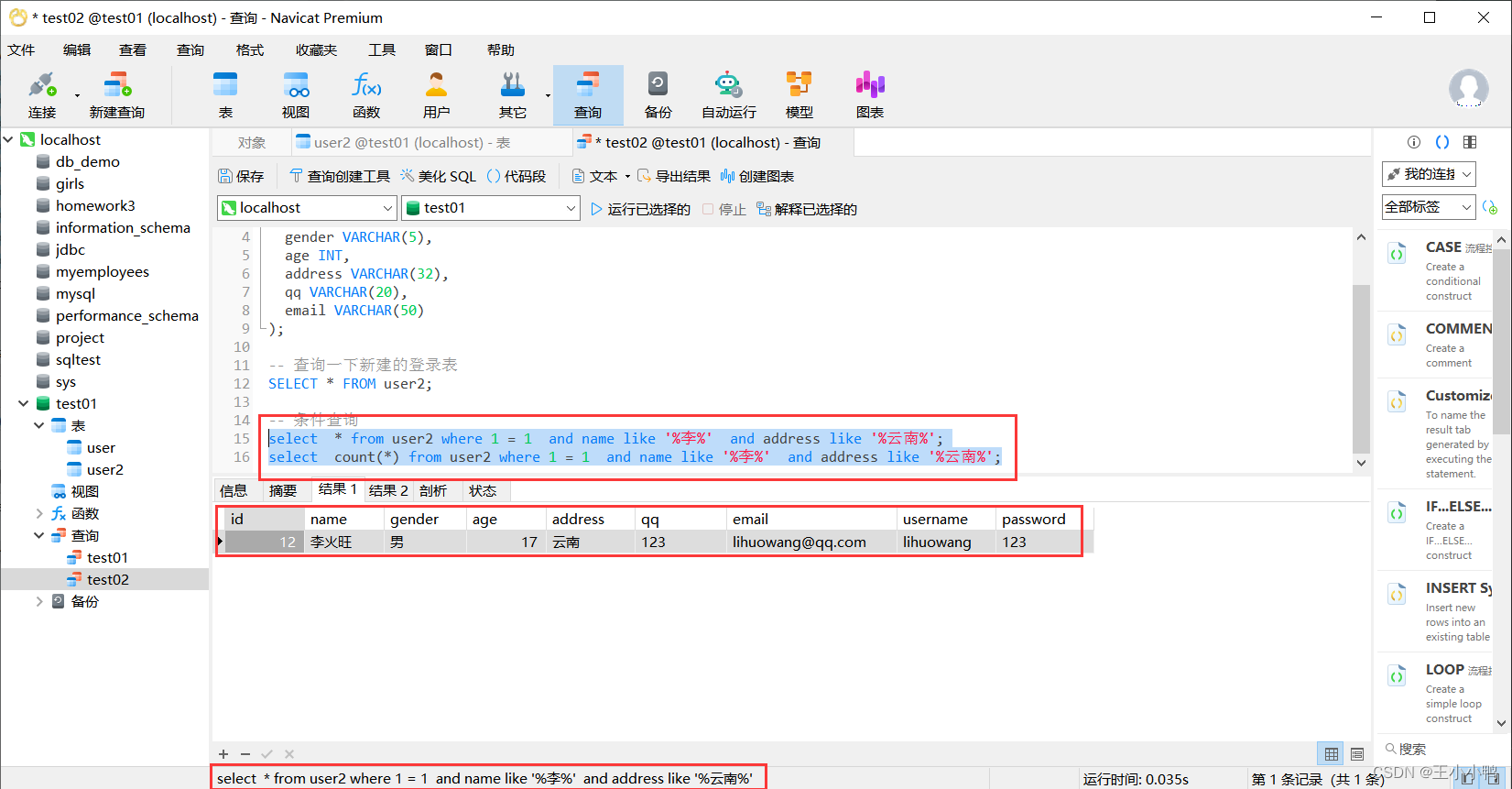 use test01; -- 使用数据库