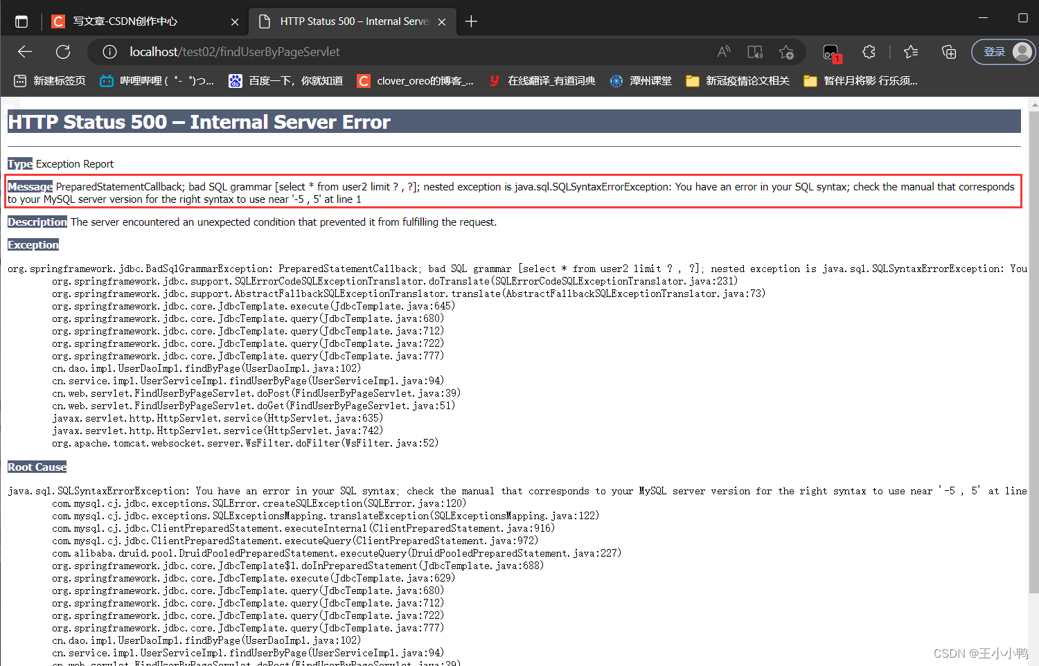 报了一个500的错