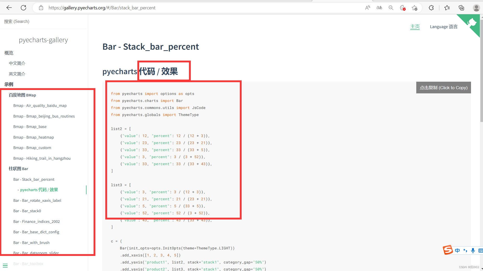这里面包含了pyecharts中的所有图表,如果有需要或者忘记了相关代码就可以进去查看