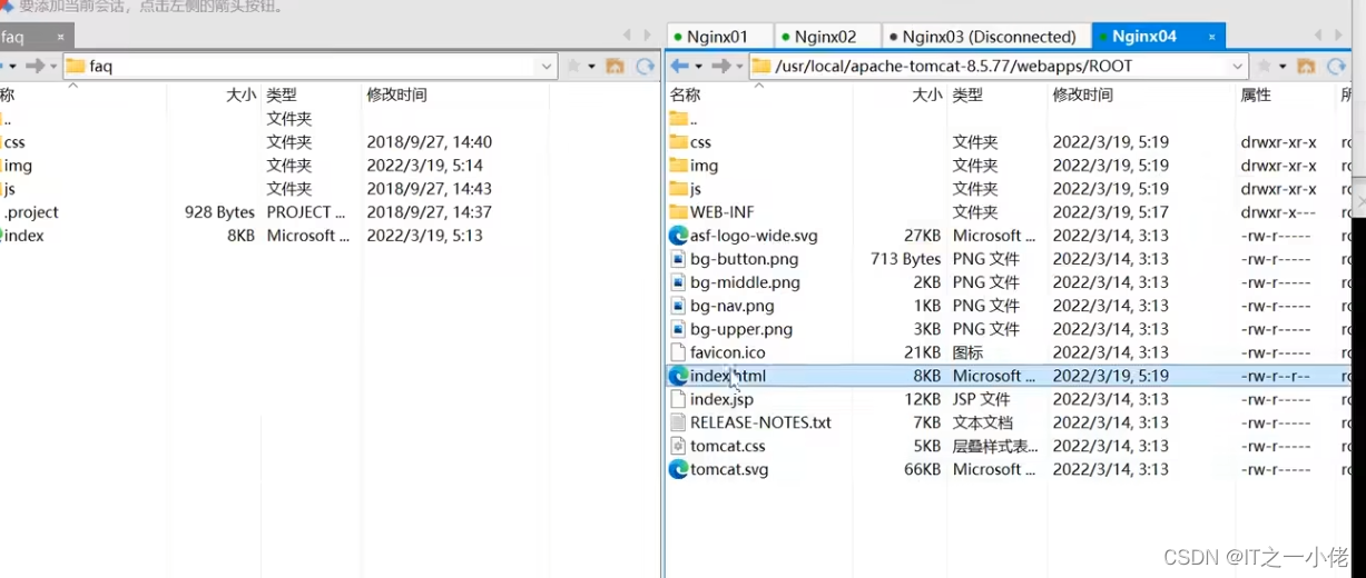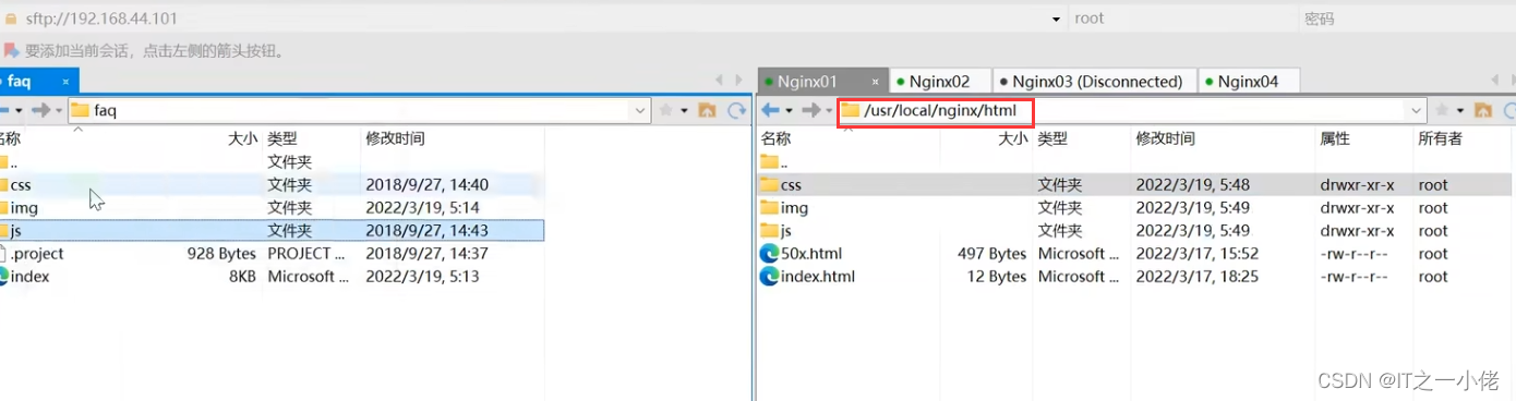 在服务器192.168.44.104:8080上面部署好了项目,接下来在192.168.44.101上面利用Nginx做动静分离:【需要把192.168.44.104服务器上的img、css、js等静态文件转移到192.168.44.101服务器上的某个目录下,然后再删除】