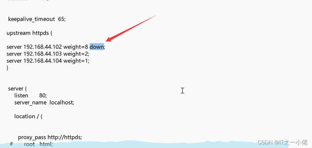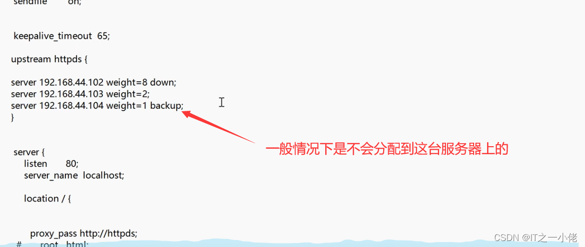 上述图片中,假如192.168.44.103服务器出现故障时,这是就是启用backup备用服务器,192.168.44.104就会启动。