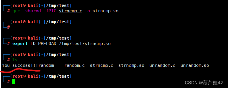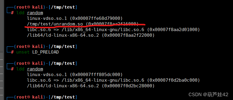 - 替换结束,要还原函数调用关系,用命令unset LD_PRELOAD 解除