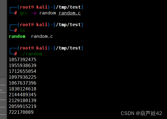 我们编译一下: gcc -o random random.c ./random执行