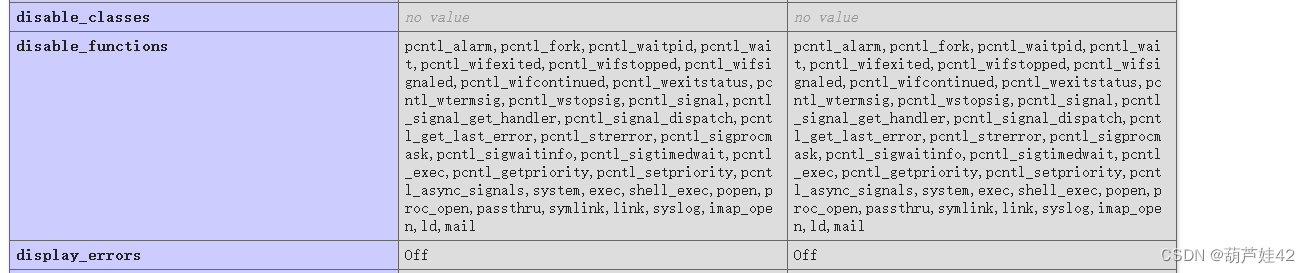 执行一下phpinfo() 发现 disable_functions禁用了大量的函数,因此这个马=执行不了命令,需要我们绕过 disable_functions