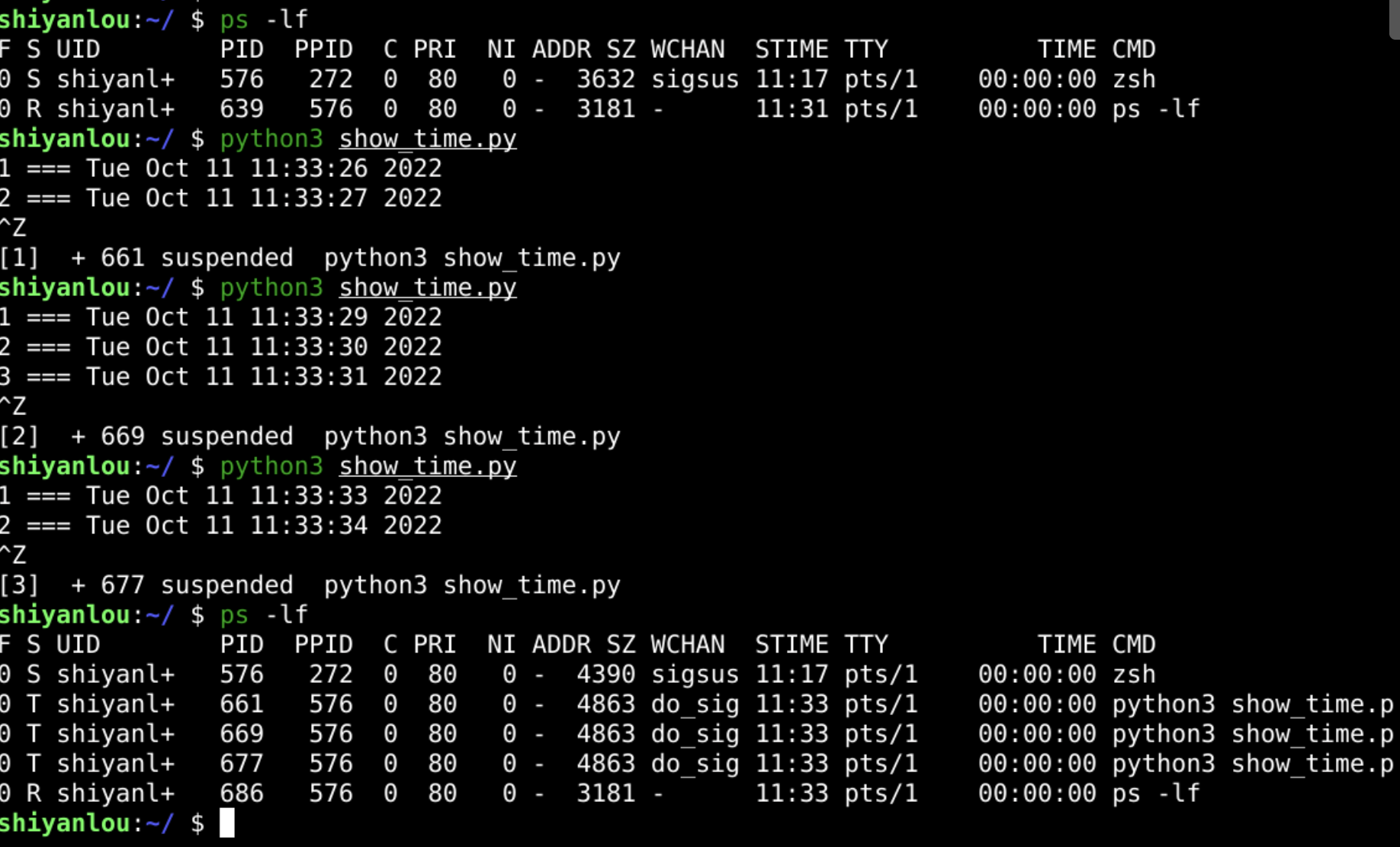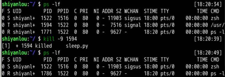 kill -9 PID 给进程发送死亡信号运行多个 python3 show_time.py 的话