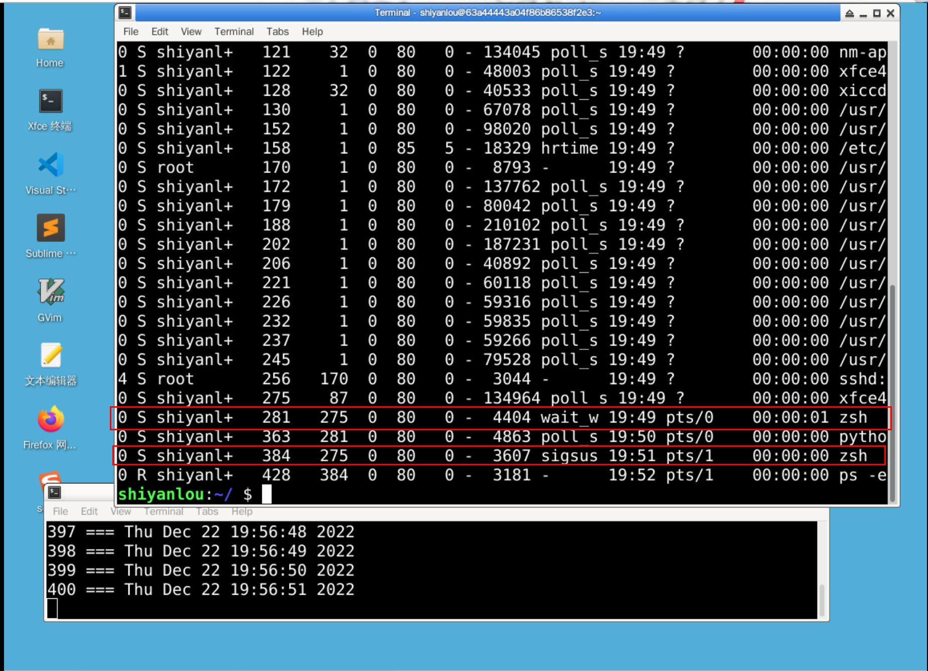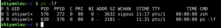 #查询进程 #我们只要和zsh这个进程相关的 #把e去掉 ps -lf