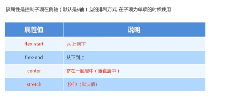 5.align-items 设置侧轴上的子元素排列方式(单行)