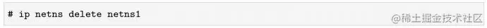 注意,上面这条命令实际上并没有删除netns1这个network namespace,它只是移除了这个network namespace对应的挂载点(下文会解释)。只要里面还有进程运行着,network namespace便会一直存在。