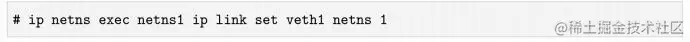 (2)ip link set veth1 netns 1把netns1 network namespace下的veth1网卡挪到PID为1的进程(即init进程)所在的network namespace。