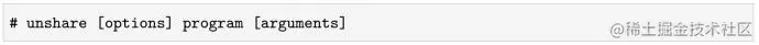那么,unshare ()系统调用具体有什么应用场景呢?大部分Linux发行版自带的unshare命令就是基于unshare ()系统调用的,它的作用就是在当前shell所在的namespace外执行一条命令。unshare命令的用法如下所示: