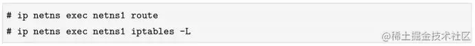 一个network namespace被创建出来后,可以使用ip netns exec命令进入,做一些网络查询/配置的工作。