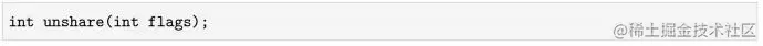 与namespace相关的最后一个系统调用是unshare (),用于帮助进程“逃离”namespace。unshare ()系统调用的函数声明如下: