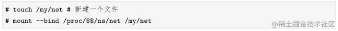除此之外,/proc/PID/ns目录下的文件还有一个作用——当我们打开这些文件时,只要文件描述符保持open状态,对应的namespace就会一直存在,哪怕这个namespace里的所有进程都终止运行了。听起来有点拗口,有什么意义呢?之前版本的Linux内核,要想保持namespace存在,需要在namespace里放一个进程(当然,不一定是运行中的),这种做法在一些场景下有些笨重(虽然Kubernetes就是这么做的)。因此,Linux内核提供的黑科技允许:只要打开文件描述符,不需要进程存在也能保持namespace存在!怎么操作?请看下面的命令:
