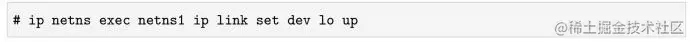 在我们的例子中,如果想访问本地回环地址,首先需要进入netns1这个network namespace,把设备状态设置成UP。