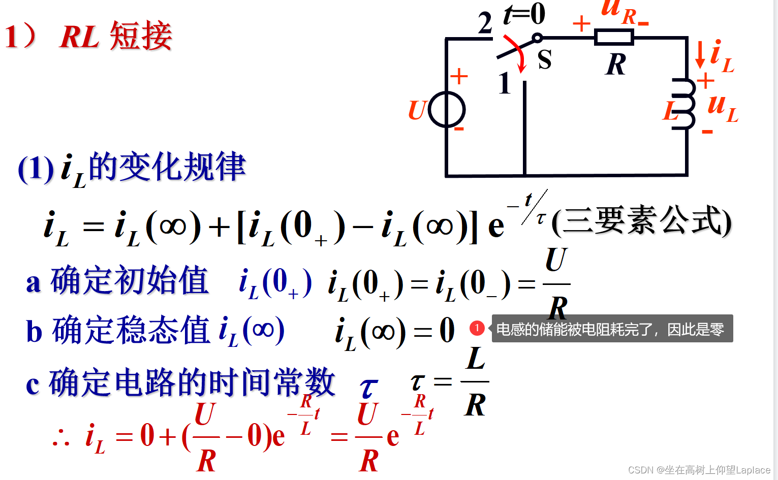 关于结论2,在0-的那一瞬间,因为没有储能,u_{C}=0,所以电容看作短路,i_{L}=0,所以电感看作开路。