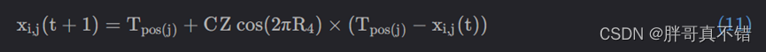假设最佳安全位置是最佳全局位置,因为这将使猎物有更好的生存机会,猎人可能会选择另一个猎物。式(11)用于更新猎物位置:
