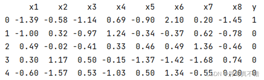 使用Pandas工具的head()方法查看前五行数据: