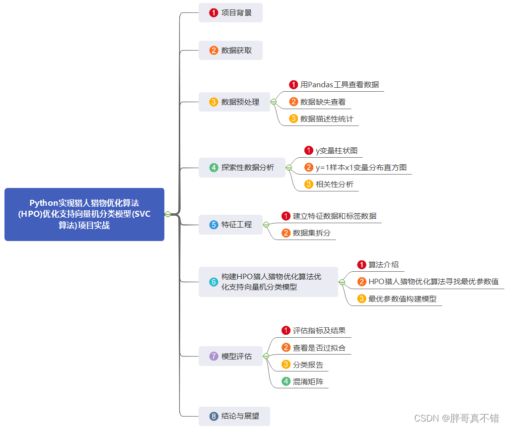 本项目通过HPO猎人猎物优化算法寻找最优的参数值来优化支持向量机分类模型。