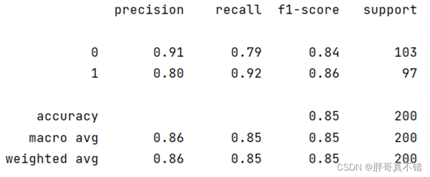 从上图可以看出,分类为0的F1分值为0.84;分类为1的F1分值为0.86。