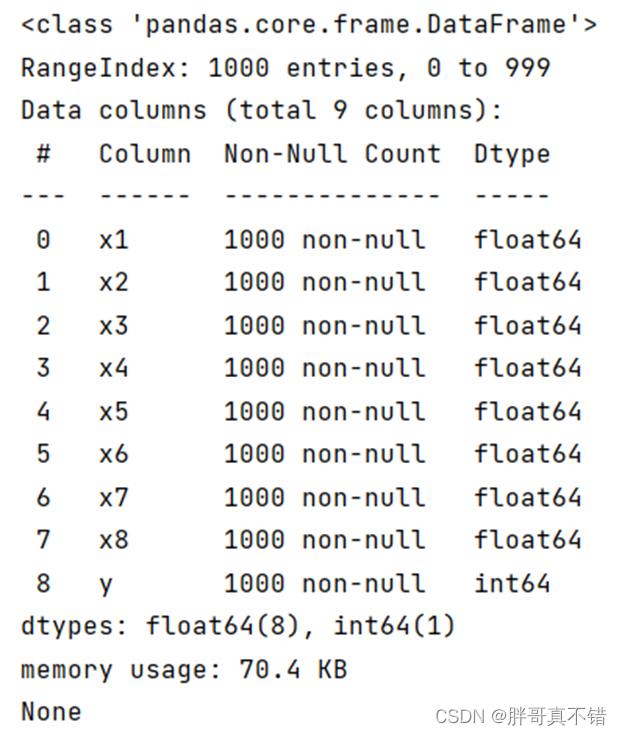 从上图可以看到,总共有9个变量,数据中无缺失值,共1000条数据。