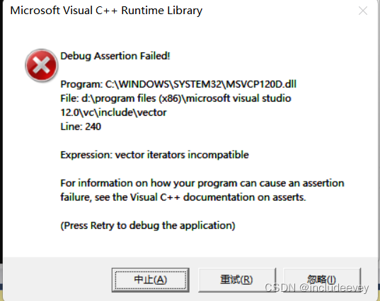 {vector v{ 1, 2, 3, 4, 5 };for (size_t i = 0; i < v.size(); ++i)cout << v[i] << " ";cout << endl;auto it = v.begin();cout << "扩容之前,vector的容量为: " << v.capacity() << endl;// 通过reserve将底层空间设置为100,目的是为了让vector的迭代器失效 v.reserve(100);cout << "扩容之后,vector的容量为: " << v.capacity() << endl;// 经过上述reserve之后,it迭代器肯定会失效,在vs下程序就直接崩溃了,但是linux下不会// 虽然可能运行,但是输出的结果是不对的while (it != v.end()){cout << *it << " ";++it;}cout << endl;return 0;