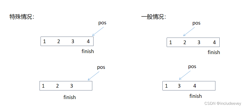 当我们更新pos,将pos指向到删除的位置就不会错了,那么代码二就多做了这一步。