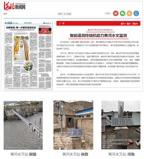 2021年,平升遥测终端机应用于黄河河道及附近流域的900多个水文监测站,助力母亲河平稳度汛,受到媒体报道。