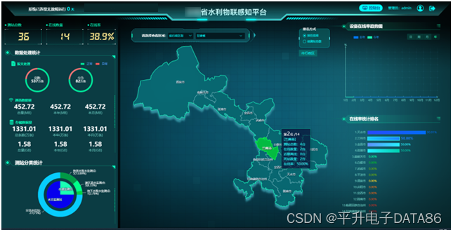平升电子水文监测系统实现对江河流域水位、降水量、流量、流速、水质、闸门开启度、墒情等数据的实时采集、报送和处理。为防汛抗旱减灾提供科学依据和有效信息共享,保障人民群众生命财产安全,满足水利和经济社会发展对水文服务的需求。
