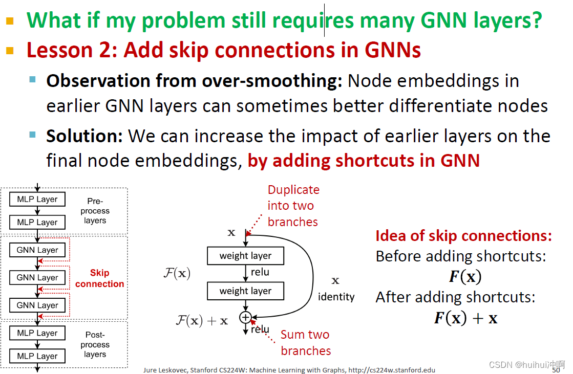 (3)Add skip connections in GNNs——当问题需要许多GNN layers时