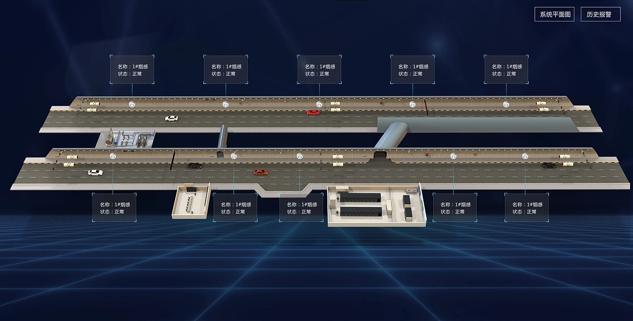 实时监测隧道内的环境,包括风速风向、温湿度、扬尘、能见度等重要信息。当出现异常时,会报警显示。
