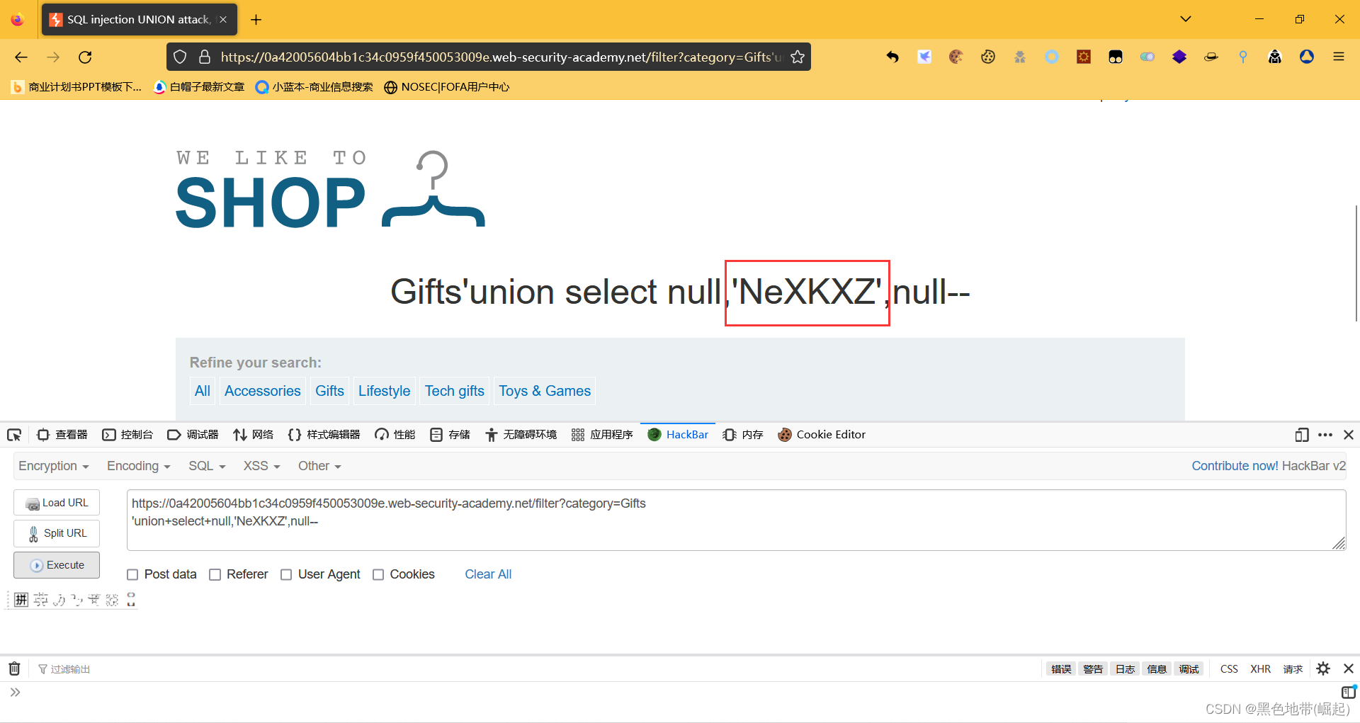 'union+select+null,'NeXKXZ',null--在第二个位置就正确了